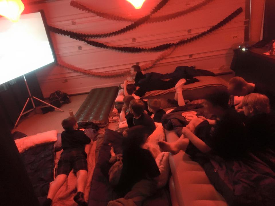We then turned the garage into sleep over central and my husband set up our projector and screen in there! They watched Beverly Hills Ninja and had popcorn. Somehow they still had the stamina to stay up until 130 am 0_o and…. then were up with the sun at 530am. We put on Teenage Mutant Ninja turtles for them at that point and some of them drifted back off to sleep. I did not. Hence that whole loathing of sleep-overs I have! haha.