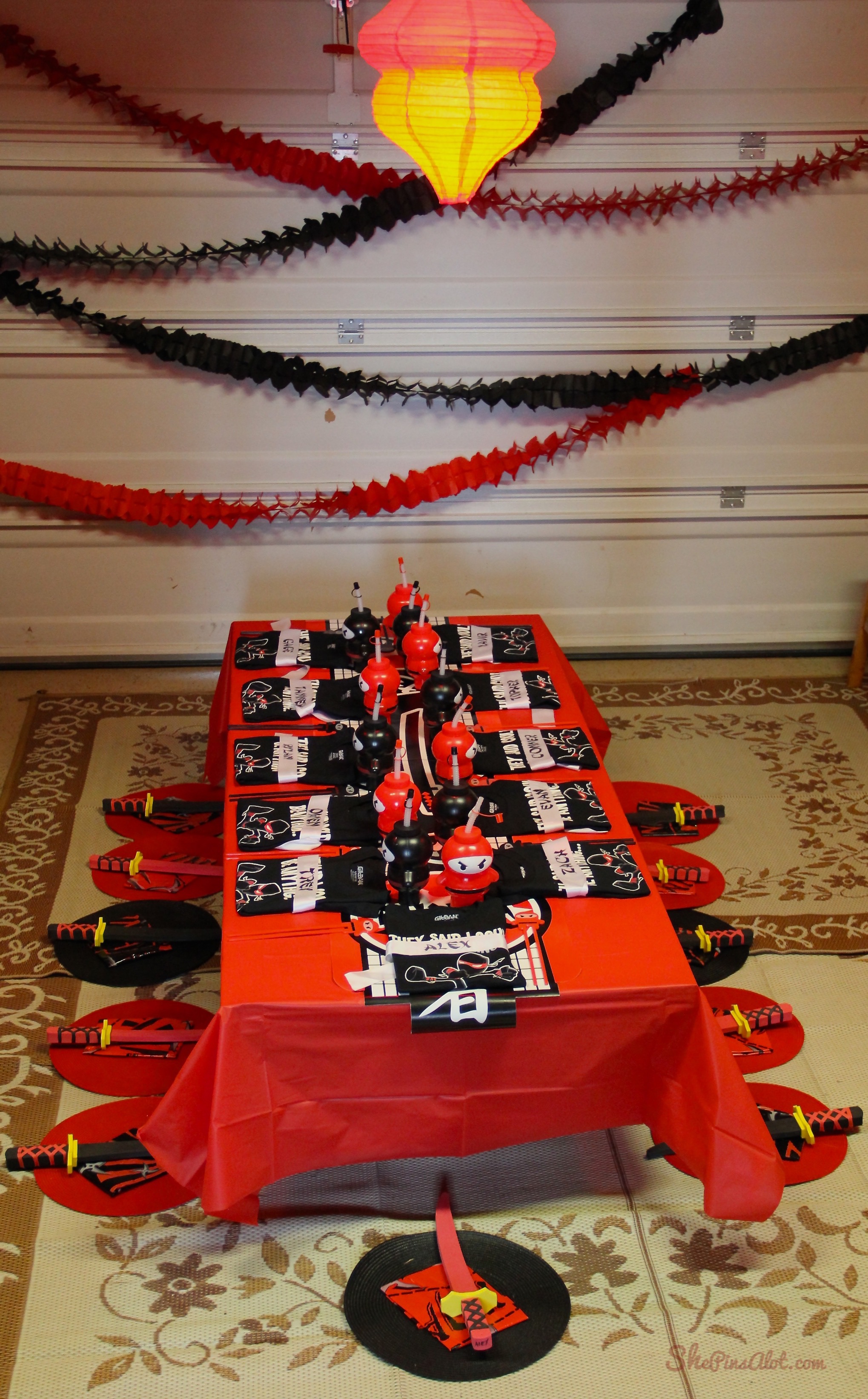 In keeping in the theme, we did Panda Express for dinner. This was a huge hit! And it just happens to be Teddy’s favorite fast food place so he was of course thrilled. We sure did end up eating leftovers all weekend! That was a lot of food!! 10-year-old boys did not eat as much as I thought they would. I love doing one big table for all of my food and dessert. It worked great for the space I had to use and the humongous pagoda was more than big enough to be an adequate backdrop! I’m all about the big impact! Those are the things that make a party pop!