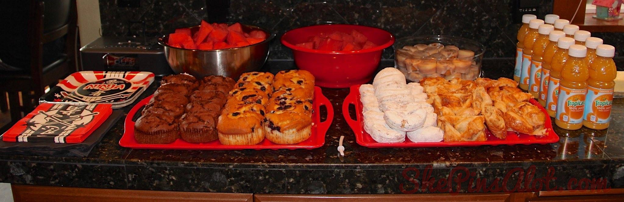 Breakfast was super simple. Muffins and donuts from Costco. I cut them in half so that they would go further with less waste and a cut up watermelon balanced them out a bit 😉 The party ended at 9am and was a huge success! Teddy was so happy with everything and had so much fun. From playing bloody Mary in the bathroom ( I can remember doing that at my 3rd grade sleepover lol ) to running around in the dark to all the little details – He had a very happy birthday. And that is all that mattered.